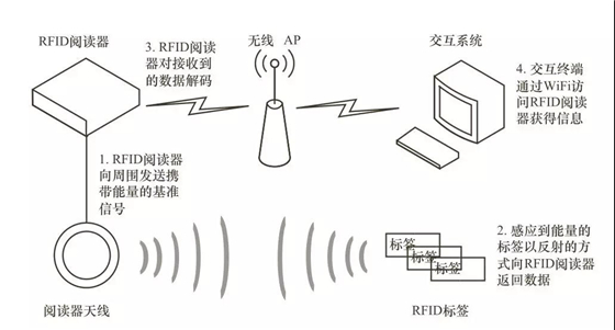 当物品进入阅读器天线辐射范围后,物品上的标签接收到阅读器发出的射频信号,无源的被动标签(PassiveTag)凭借感应电流所获得的能量发出存储在标签中的数据,有源的主动标签(Active Tag)则主动发送存储在标签芯片中的数据。阅读器读取数据、解码并直接进行简单的数据处理,发送至交互系统;交互系统根据逻辑运算判断标签的合法性,针对不同的设定进行相应的处理和控制,由此实现RFID系统的基本功能。