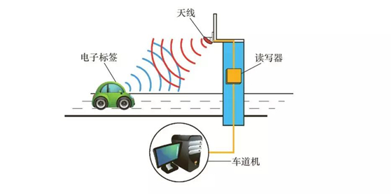RFID技术对促进现代交通运输业发展,推进交通运输信息化有着重要意义。其实现了交通领域的管理智能化、物流可视化、信息透明化的理念和发展趋势,因此,目前越来越多的交通运输行业开始引入基于RFID的智能管理系统,以提升其工作效能及准确性。如下图所示,展示了电子不停车收费系统的构架图,其主要由阅读器、天线、车道机及汽车前挡风玻璃上的RFID标签构成。