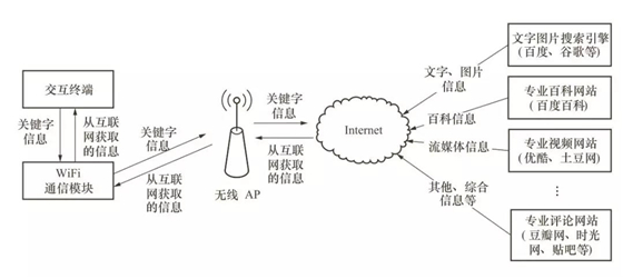 标签识别为RFID应用提供了最为关键的信息提取的功能,然而即使RFID的可存储的信息容量已经相较于其他识别技术有了很大改进,但其存储信息相较于整个互联网来看,还是极为有限。因此,基于标签有限的关键字信息,通过在互联网端进行信息抽取,使RFID标签成为接入广阔数字媒体世界的窗口,通过这种信息检索与集成的方式,提供更多维度的感知体验,实现快速高效的信息管理。