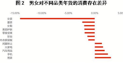 从男女对不同年货品类的消费差异看,男士更喜欢买手机等数码产品、汽车用品和家电作为年货,而女士更喜欢买护肤品、零食和彩妆(参见图2)。这一点也可以看出男女的着重点不同,男士买年货是让家里生活更上一层楼,女士首选是让自己过年变得美美哒。