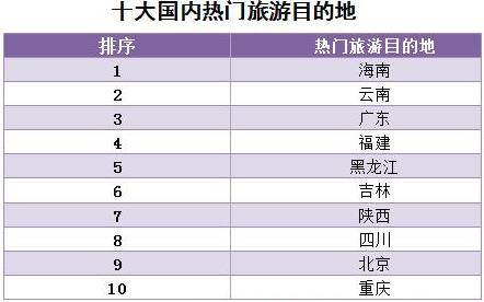 从2018年国内十大热门旅游目的地来看,过年南下或者北上是春节的首选。南下的话,海南、云南、广东、福建排名前四,空气质量好、天气暖和是这些省份的优势;黑龙江和吉林分别排名第五和第六,因为寒冬大雪、暖气土炕对部分南方人来说有一定的吸引力(参见下表)。
