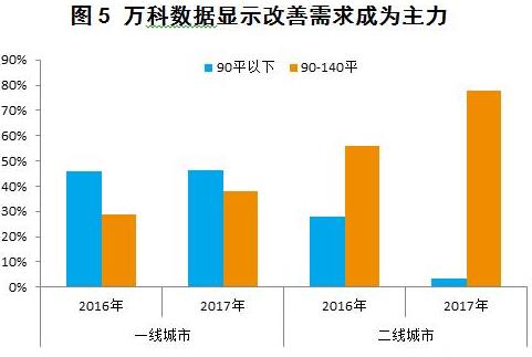 改善需求是本轮房地产周期的核心推动力量。房子变大了,自然会配套更好的家电、家具和汽车。根据万科的销售数据,一线城市中90-140平米的改善需求占比从2016年的29%提升到2017年的38%,二线城市改善需求占比从2016年的56%提升至2017年的78%(参见图5)。