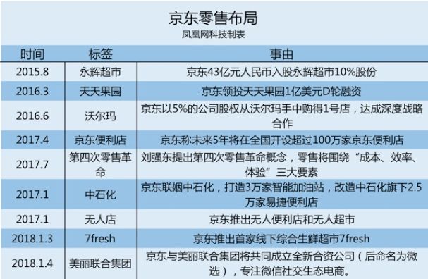 尽管腾讯在线下零售的起跑时间晚于阿里,但其加速度惊人,尤其是最近一段时间在零售领域深度布局。自2014年腾讯入股京东之后,腾讯在这个阶段,更多是将线下零售的事交由京东来操盘——2015年8月京东43亿元入股永辉超市10%股份,2016年京东以5%的公司股权从沃尔玛手中购得1号店。