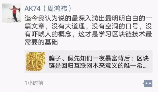 昨日下午,奇虎360创始人周鸿祎在微信朋友圈分享了一篇文章,并称“这才是学习区块链技术最需要的基础”。
