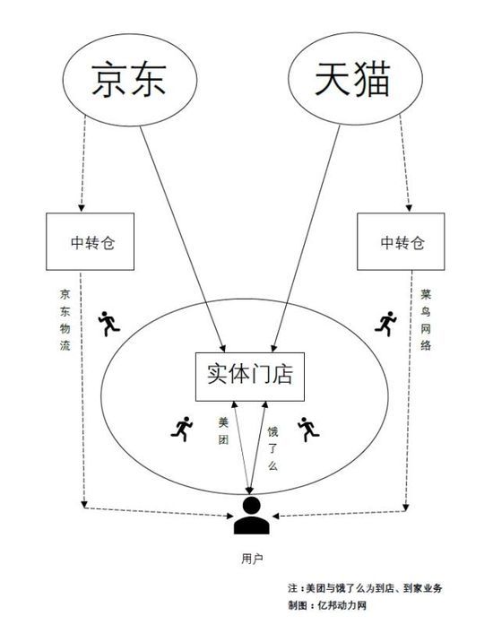 从两条线看,阿里巴巴阵营方面,一旦盒马鲜生与饿了么协作,其想象空间是,随着盒马鲜生的商品品类不断扩张,试验成功后,将有机会在服务好盒马鲜生线上用户的基础上,更进一步打通阿里巴巴旗下天猫平台上的实体商家。腾讯阵营方面,当美团外卖与海澜之家这样的实体零售商探索成功,自然也会打通对标天猫的京东平台上的实体商家。