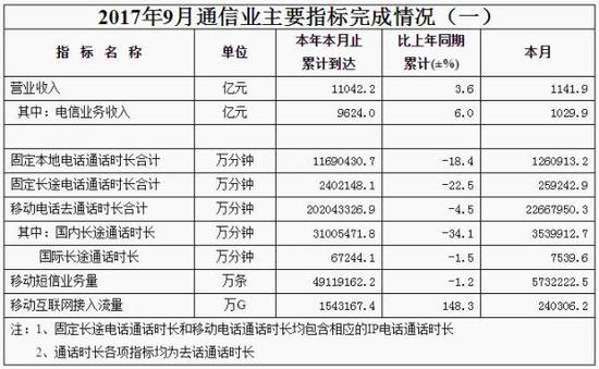 电信业务收入增速明显提高。9月,电信业务总量完成2620亿元,同比增长89.4%。三家基础电信企业完成电信业务收入1030亿元,同比增长7.2%,增速较去年同期提高5.4个百分点。