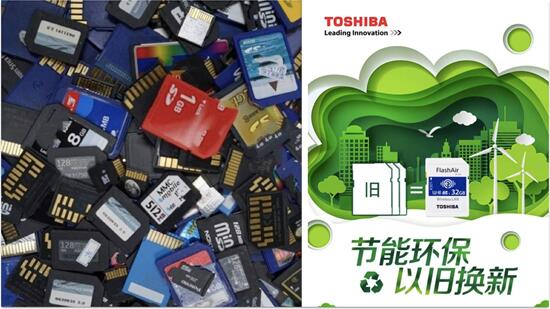 东芝存储与蜂鸟网于2016年合作推出的东芝存储卡复活计划,向用户完美诠释了“减少使用、再利用、再循环”的环保理念。以5张废旧的存储卡兑换1张东芝高速卡的活动,并在活动结束后举行摄影展,先前兑换回来的5000张旧卡还以装置的形式呈现在影展现场;2017年成功举办了“百人接力,影像传递计划 ”:在北京、上海、广州、天津、沈阳、哈尔滨、济南、重庆、青岛、厦门等十城开展百人的影像传递活动,东芝存储卡将经历十城百人的传递,展现它的神奇魅力;而今年,东芝存储也在官方微博上发起“节能环保,以旧换新”活动,以3张废旧SD卡兑换一张FlashAir无线SD卡,在享受更新科技与便利的同时,不忘为环境尽一份心力。