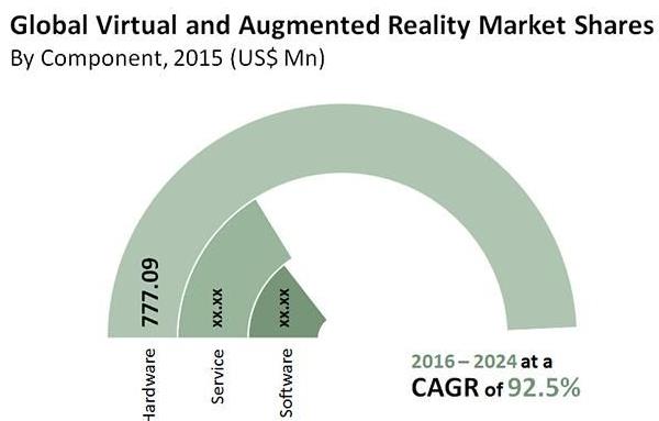 尽管软件,硬件和服务都将推动市场增长,但TMR仍将硬件部分放在报告的首位。全球市场的硬件部分在2015年占73%,预计到2024年仍将占据主导地位。业界对头戴式显示器(HMD),主机,输入/传感器SFCV和眼镜成为市场前进的主要焦点。VR和AR技术的主要终端用户包括教育,医疗保健,建筑,制造以及国防和航空航天等行业。