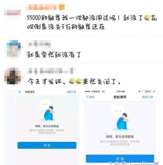 此事件之后,很多支付宝用户突然发现,自己的花呗、借呗遭到降额,严重的甚至被关闭。