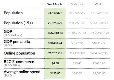 沙特阿拉伯的电子商务规模为45亿美元,年增速为32%。