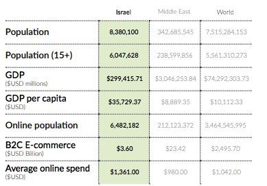 以色列电商消费最多的三大品类是:机票和酒店(20%)、服装和鞋(10%)、电子产品(7%)。