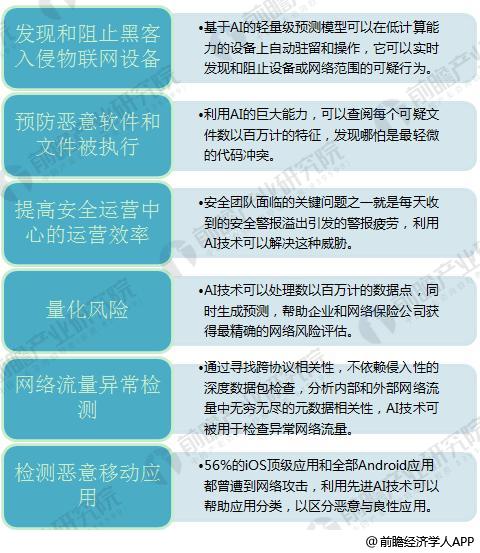 人工智能在防御领域的这个天然优势,使得AI+网络安全成为当红炸子鸡,尤其是在发现和阻止黑客入侵物联网设备、预防恶意软件和文件被执行、提高安全运营中心的运营效率、量化风险、网络流量异常检测、检测恶意移动应用这六大关键创新领域,成为AI网络安全防护的突破口。