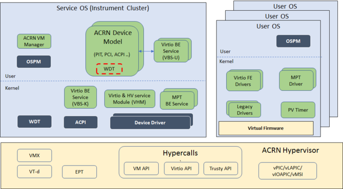 图1显示了一个使用ACRN hypervisor的实例框图。