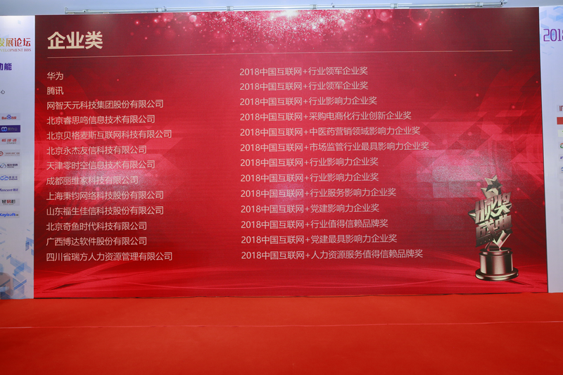 此次颁奖盛典中,“2018中国互联网+行业领军企业奖”由“腾讯”和“华为”获得,人力资源行业唯一一项“2018中国互联网+人力资源服务值得信赖品牌奖”由四川省瑞方人力资源管理有限公司获得。
