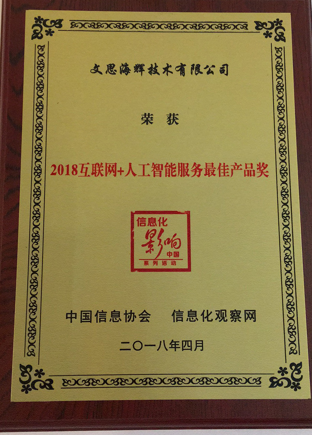 除论坛之外,本次活动还面向互联网+行业颁发了包括人物、企业、产品技术、解决方案及应用、服务的5大类共11个奖项。其中,文思海辉凭借文小包产品荣获“2018互联网+人工智能服务最佳产品奖”。