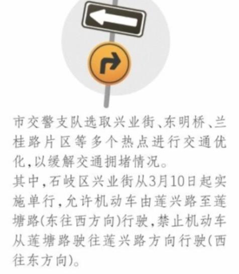 于是今年3月中山市交警支队选取多个热点地区针对性进行交通优化。比如,石岐区兴业街从3月10日起实施单行,允许机动车由莲兴路至莲塘路(东往西方向)行驶,禁止机动车从莲塘路往莲兴路方向行驶(西往东方向);3月15日,开通了东明北路东明桥南往北下桥位置右转弯匝道,并配合信号灯调优等措施有效缓解东明桥片区交通拥堵问题。