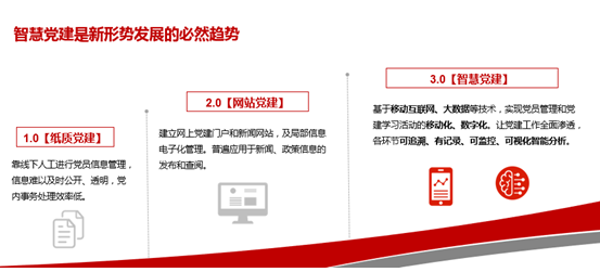 “互联网+党建”经历了三个阶段发展到今天的智慧党建阶段,也是“互联网+党建”的高级阶段。