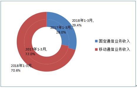 图3 2018年1-3月电信业务收入结构占比情况(固定和移动)
