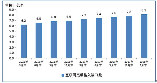 图10 2016-2018年3月互联网宽带接入端口数发展情况
