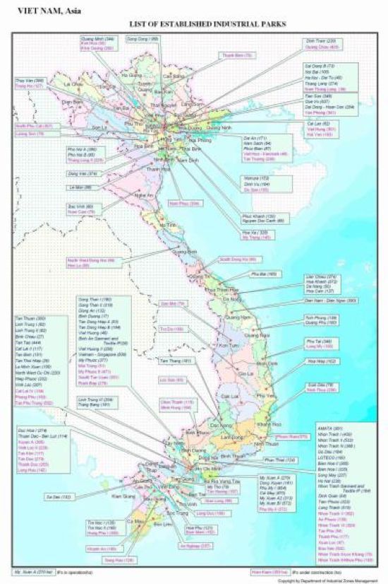 从这张地图可以看出,越南的工业园区从最北端到南端排成一排。 大多数工业园区都分布着从事不同行业的多样化企业。