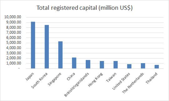 2017年,前10名的国家占外商投资总额(359亿美元)的 90%。