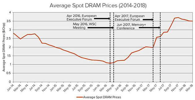 2014-2018年,DRAM价格上涨图2014-2018年,DRAM价格上涨图