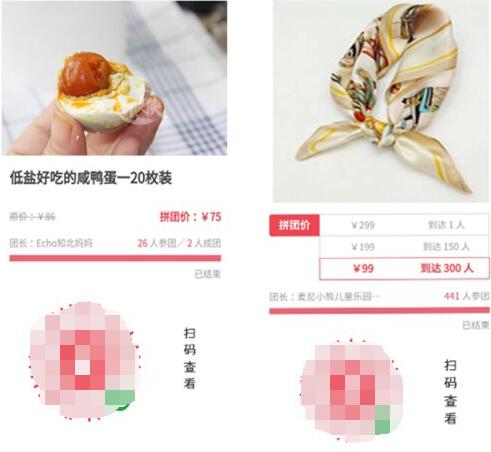 左边这个是一个宝妈用群拼做的拼团,各种生活小物和自己的朋友们分享,每次发的单品团都能有几十单的参与量。
