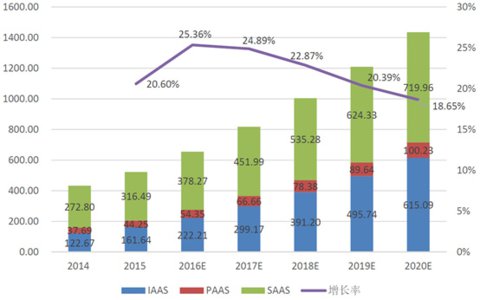 据 Gartner 数据显示,2015 年以 IaaS、PaaS 和 SaaS 为代表的全球云服务市场规模达到 522.4 亿美元,增速 20.6%;预计 2015-2020 年复合增长率达 22.4%。