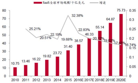 国内 SaaS 市场仍然缺乏领导者:从市场规模看,2015 年 SaaS 市场规模达 55.3 亿元,远超过 IaaS 和 PaaS 市场的总和,同比增长 37.6%(2014 增速 15.2%)。在 ERP、CRM 等核心企业管理软件服务领域,国际厂商占据主要市场份额,缺乏有力的国内竞争者。从用户应用来看,据中国信息通信研究院统计,在采用 SaaS 服务的企业中,有将近 70% 使用云邮箱、统一通信平台等基础通讯软件服务,且大多数是免费服务,采用 ERP、CRM 等企业管理软件服务和专业的行业应用软件服务的用户均低于 50%。