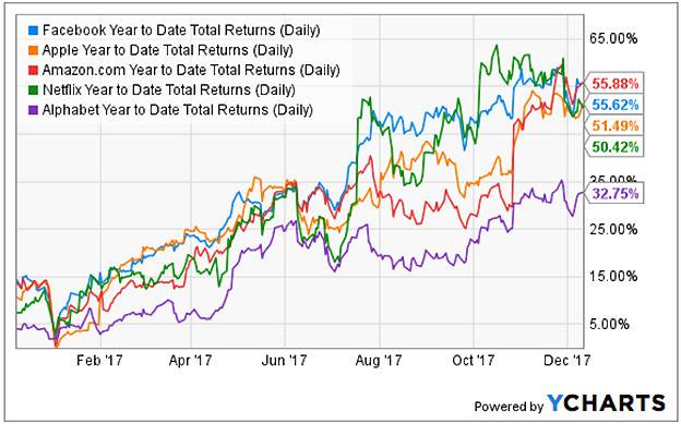 (“Fang”各支股票 2017 年的整体回报率变化情况)
