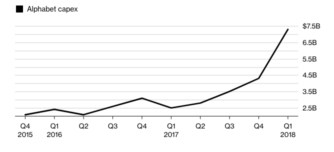 (Alphabet 的资本支出变化 图片来源:彭博)