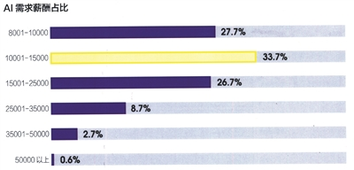 阿里巴巴高级技术专家毛茂德也从侧面印证了这个数字的可信性:“人工智能专业背景出身的求职者,在具体评级中,会比同年龄段其他专业出身的同等求职者高一级或者半级。”