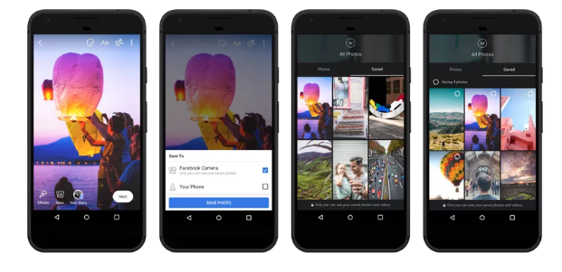 对应的Facebook相机将启用三项新功能中的两项。使用Facebook相机拍摄照片或视频的用户将会看到一个新选项,将其直接保存到他们的Facebook帐户,以便在存储有限的入门级设备上节省本地存储空间,这对全世界的用户来说可能是一大福音,他们必须经常删除一张照片,然后才能分享一张新照片。保存到Facebook账户的照片和视频只有在用户登录Facebook后才能看到。