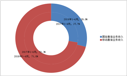 电信业务总量继续高速增长。2018年1-4月,电信业务总量①完成15376亿元,同比增长125%。电信业务收入完成4431亿元,同比增长4.5%。