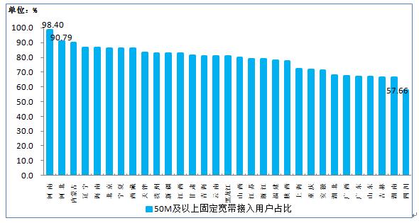 图10 50M及以上接入速率的固定互联网宽带接入用户占比各省分布情况