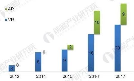 图表1:2013-2017年全球VR/AR行业投资规模统计(单位:亿美元)