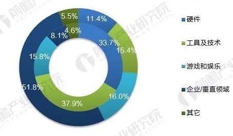 随着VR/AR行业的发展,投资者重点关注的领域也在一直变化。2013-2016年,全球VR/AR行业投资重点领域为硬件、游戏、社交;而在行业趋势不明朗时,有着长期价值、不依赖单个内容或平台成功的工具和底层技术被视为风险较低的投资,因此,2016-2017年全球VR/AR行业投资重点领域是工具和底层技术;由于硬件出货量低于预期,2017年以来,投资者的关注重点转向能够快速验证产品价值并产生收入的企业/垂直行业领域。
