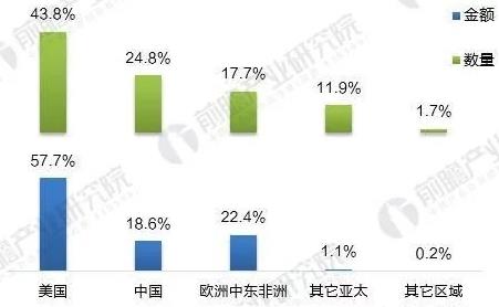 图表5:2017年全球VR/AR行业投资地域分布(单位:%)