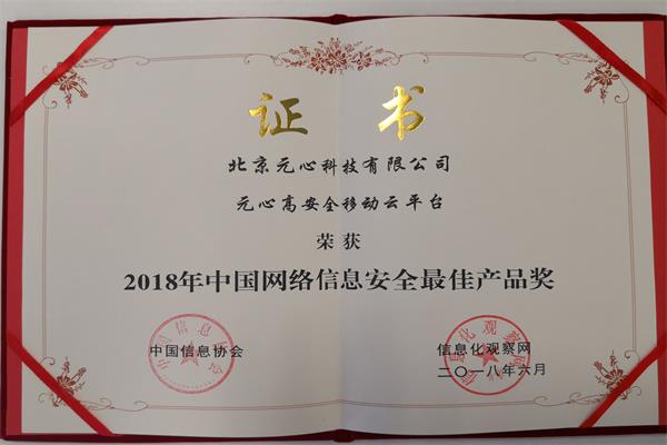 2018年6月6日,在由中国信息协会主办的“第三届中国网络信息安全峰会”颁奖典礼上,北京元心科技有限公司“元心高安全移动云平台”凭借“技术创新性、先进性、助力客户产业升级和业务转型、市场开拓”等维度的突出表现,荣获“2018中国网络信息安全最佳产品奖”。该奖项体现了业界对于元心科技不断践行OS+战略,持续推动自主可控、安全可信移动智能终端操作系统升级演进、构建云网端一体化安全技术体系的高度认可。