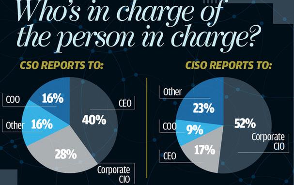 在设置有CSO的公司里,大约有一半公司的CSO直接向CEO或COO汇报工作,而有将近四分之一公司的CSO直接对公司CIO高管负责;而对设置有CISO的公司里,这种工作负责制几乎是相反的,有接近一半公司的CISO受CIO高管负责领导,有四分之一公司的CISO受公司其它高管负责领导。根据这种调查情况来看,至少从目前来看,似乎CSO是个更具威望的职位。而且在这两个职位之上,有时还会存在一些其它的隐形潜在领导,比如部门CIO和资产防损的CFO等。