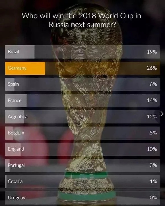 今年的俄罗斯世界杯,诸多机构的人工智能,都预测巴西和德国将上演冠军大战。巴西能否一雪前耻,德国能否成功卫冕?我们拭目以待。