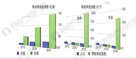 2010-2030年全球和中国移动终端及物联网连接数增长趋势