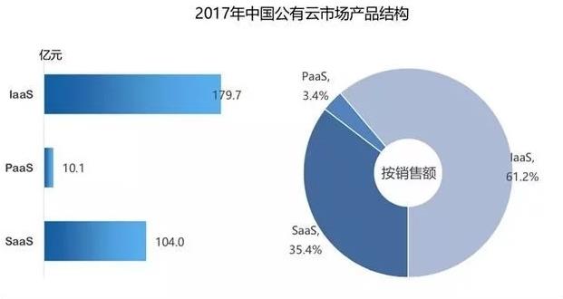 中国市场的情况与全球,尤其是与美国相比有所不同。虽然增速高于全球平均水平,但是公有云领域里的最大一块蛋糕归于IaaS,而不是SaaS。