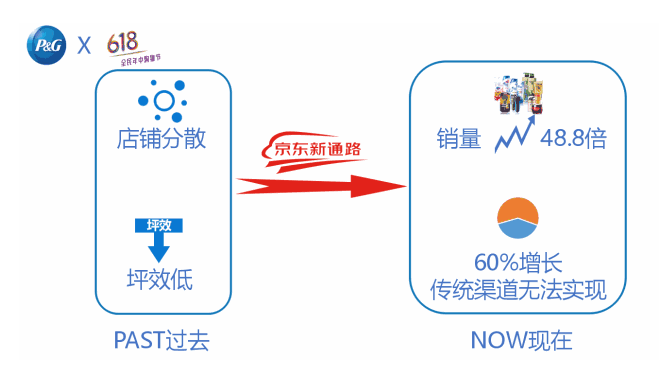 一位河北的京东便利店店主表示,加入京东便利店后,参与了今年618线上、线下联动的大促活动,还开通了线上店铺小程序,目前日营业额已经翻了三倍! 搭上新玩法,百年老牌宝洁高速增长。 近年来,宝洁企图通过渠道下沉开发增量市场来破局。然而渠道越往下沉,店铺越分散,宝洁用过去一二线城市的打法不奏效,不仅坪效低,而且时间和经济成本都很高。 直到遇到京东新通路,提供了一个很轻又有效的方案,终于看到曙光。本次618,宝洁的表现惊人,洗护发品类超品日销量是5月日均的4880%。宝洁团队认为,新通路给他们带来的增长和其他平台带来的增长含金量不一样,新通路平台增长里60%是过去通过传统的经销商和分销商渠道所不能实现的。