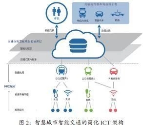 由于公交部门的表现不一,主要取决于城市成熟度水平,因此在描述智慧城市的交通部门的架构时,需要考虑城市成熟度。当前为了评估智慧城市的发展水平,已有多种评级方法,这类评级有助于遴选领先者,同时领先者的优秀实践可成为其他城市的标杆,智慧城市的简化 ICT 架构如图 2 所示。