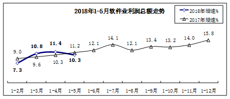 中心城市软件业收入和利润同比均保持增长。1-5月,全国15个副省级中心城市实现软件业务收入13239亿元,同比增长14.3%,增速同比提高1个百分点,占全国软件业收入比重56.8%。中心城市软件业实现利润增长9%,增速比1-4月提高0.4个百分点,低于同期全国平均水平1.3个百分点,但营业利润率仍持续高于全国平均水平。