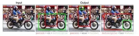 这里体现出了一个非常重要的问题,也就是人类能够做到的、最为重要、最为基础的图像识别功能——理解图像中物体之间的关系。为了模拟人类,在计算机的图像识别任务中,输入的是图像,计算机所输出的信息包括图像中的物体、它们所处的位置以及物体之间的关系。目前我们有一些前期工作,但是绝大多数由计算机所判断的物体之间的关系都是十分有限的。