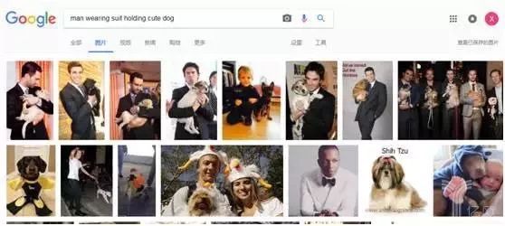 那么我们到底要怎么使用这个工具呢?场景识别就是一个例子:它单独来看是一项简单的任务,比如在谷歌里搜索“穿西装的男人”或者“可爱的小狗”,都能直接得到理想的结果。但是当你搜索“穿西装的男人抱着可爱的小狗”的时候,它的表现就变得糟糕了,这种物体间的关系是一件很难处理的事情。