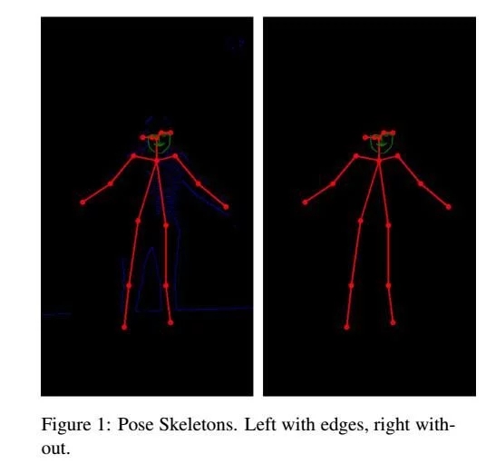 此外,虽然我们选择在我们的流水线中不包含边缘检测,但如果能够在增强监视和边缘检测提供的过度拟合之间找到适当的平衡点,则可以产生更多的实际输出。一个可能的方法是从各种各样的输入源传入姿势骨架,以便模型学习忽略边缘图像的非关键部分。