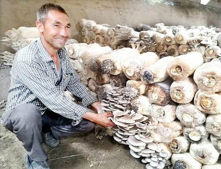 昨日,阿克苏地区乌什县阿恰塔格乡布干村蘑菇合作社理事长图尔迪 · 亚森摘着“肥壮”的蘑菇,脸上露出了笑容。去年10月,该村12位农民每人出资2260元,成立合作社种起蘑菇。图尔迪说:“现在蘑菇生长趋势良好,日产量达25公斤左右,预计到年底,总收入能达3.6万元。”